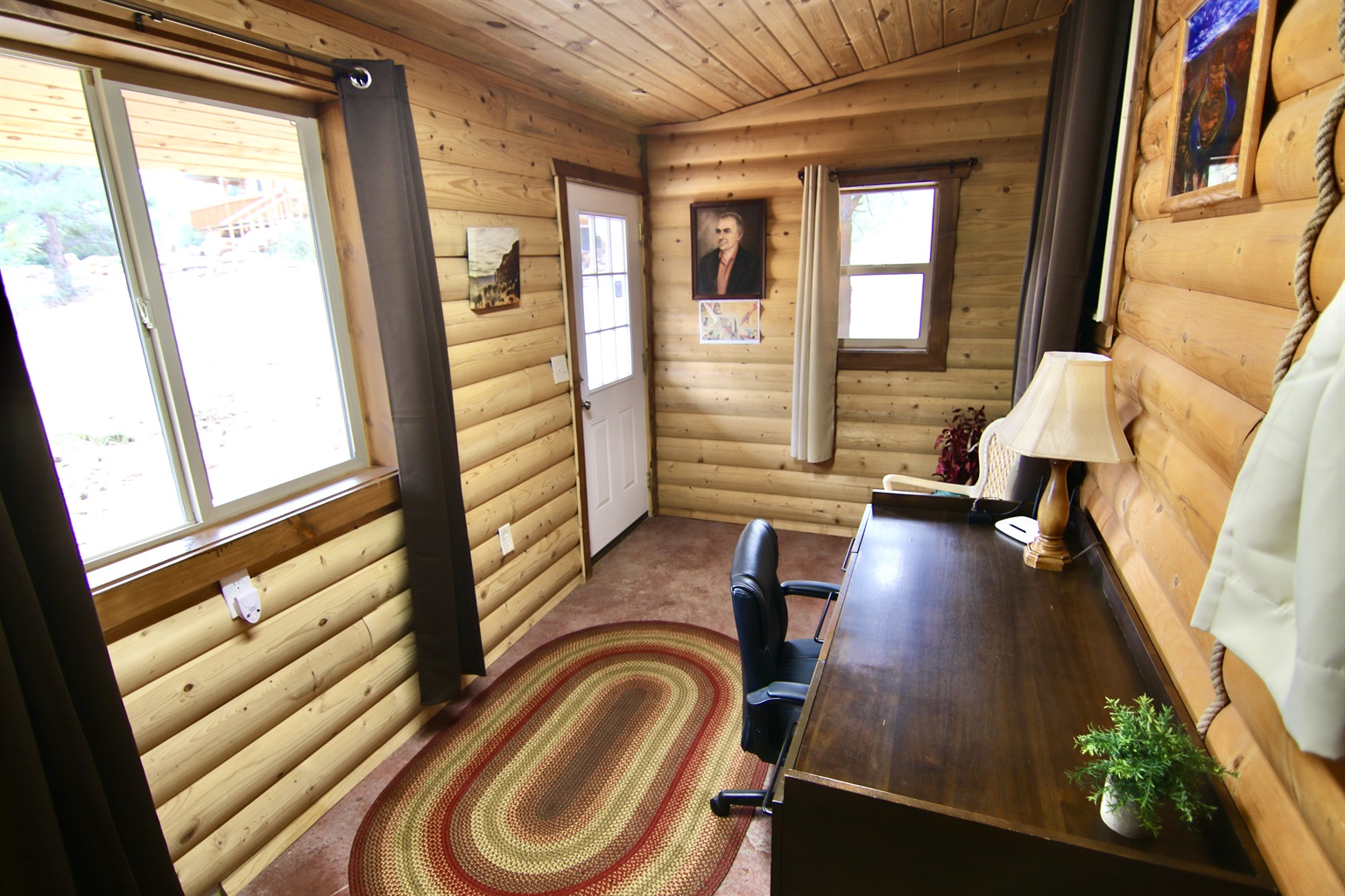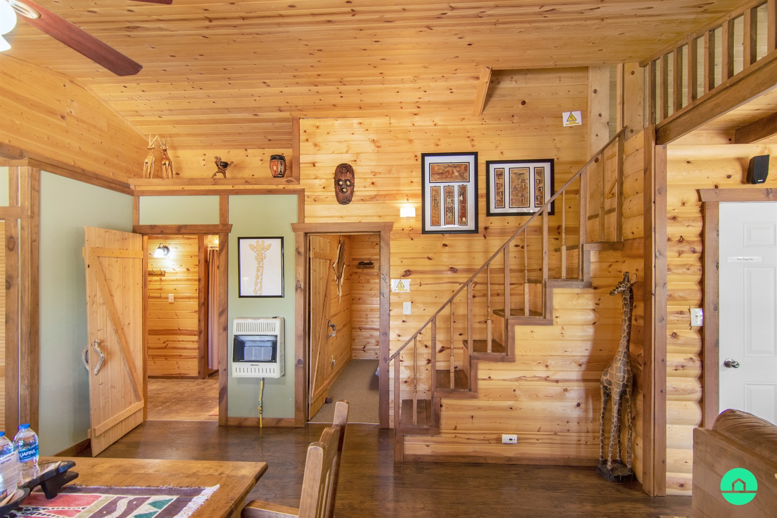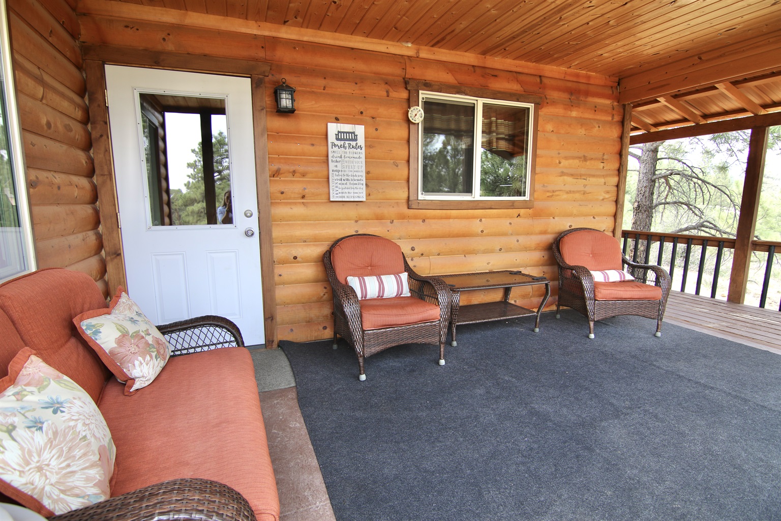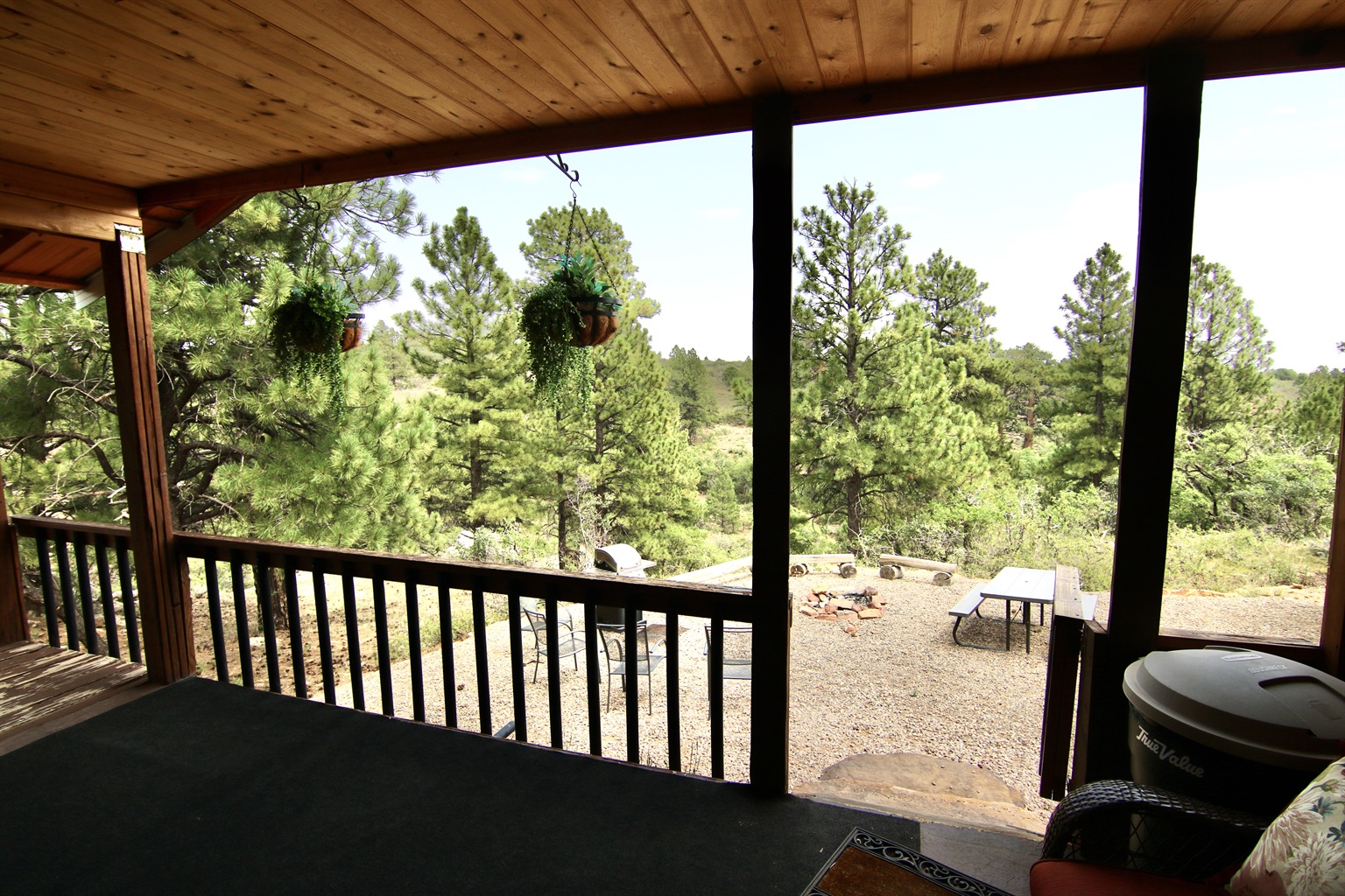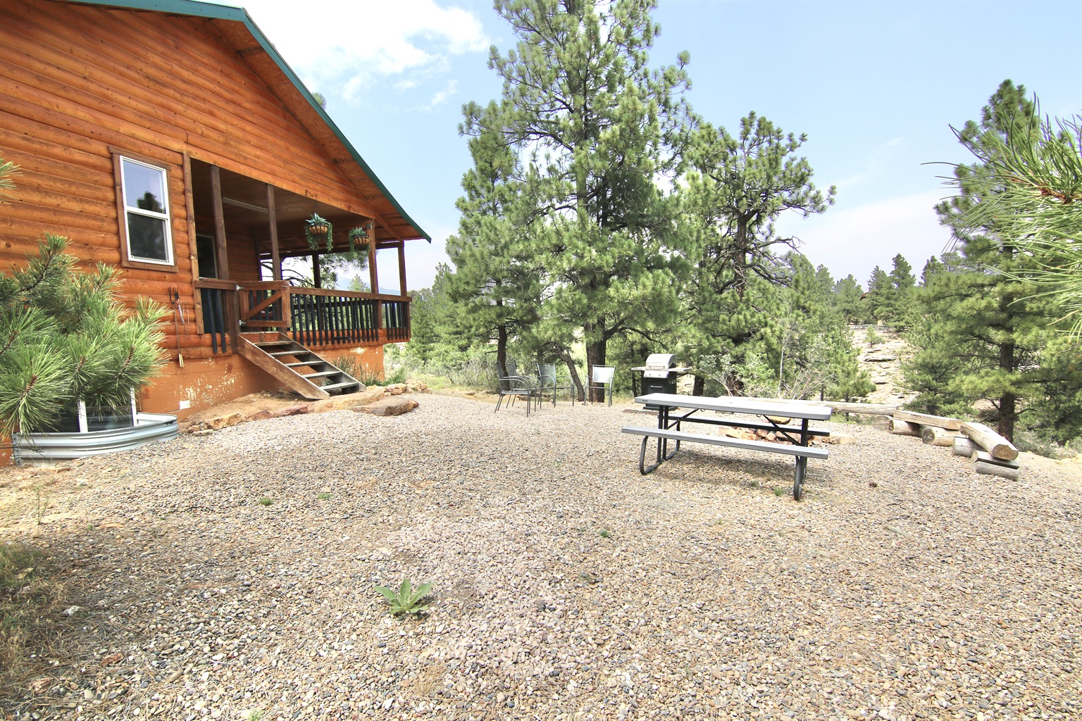 The Cozy Africabin is a guest favorite! Lavishly decorated with African decor. Sleeps up to 8 in beds including the loft beds. WiFi Business Center included for working away from home if necessary. Set in a beautiful location at 7,200' elevation - surrounded by trees in the forest at the foot of the Abajo Mountains, this cabin is the ideal spot to escape to - while remaining central among more than a dozen state and national parks and monuments, there is parking for all your vehicles, trailers and toys! Featuring a spacious main level with Master Suite with a full 3 room bathroom with shower. Also has a full kitchen, dining table, plush sofa, and love seat. The upper-level loft features two queen beds and a full bed. On the main level there is a family room with a big-screen TV and surround sound! And don't forget the extra loft w/ carpet and additional pads for the kids! HDTV w/DVD player, wi-fi, and all linens are provided. Outside you'll find a beautiful breakfast nook overlooking the canyon and forest, a large family campfire area, a covered deck, picnic table. Enjoy morning and evening walks among the deer and wildlife on more than 3 miles of private trails.