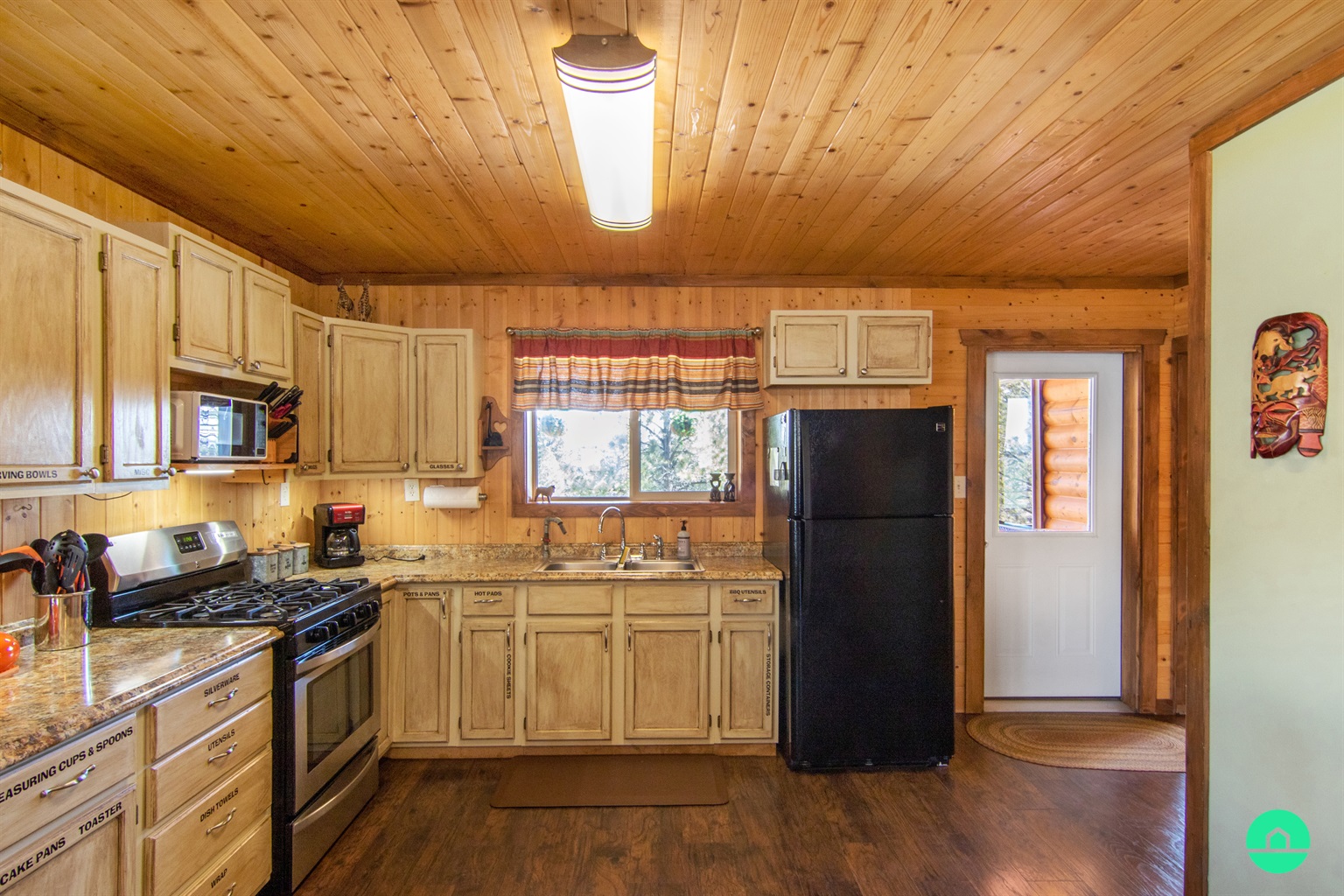 Imagine This! Eating breakfast on the veranda, overlooking the forest and canyon, with hummingbirds on the feeders, deer eating and meandering through the trees, a beautiful sunrise with music playing thru the kitchen window. WiFi