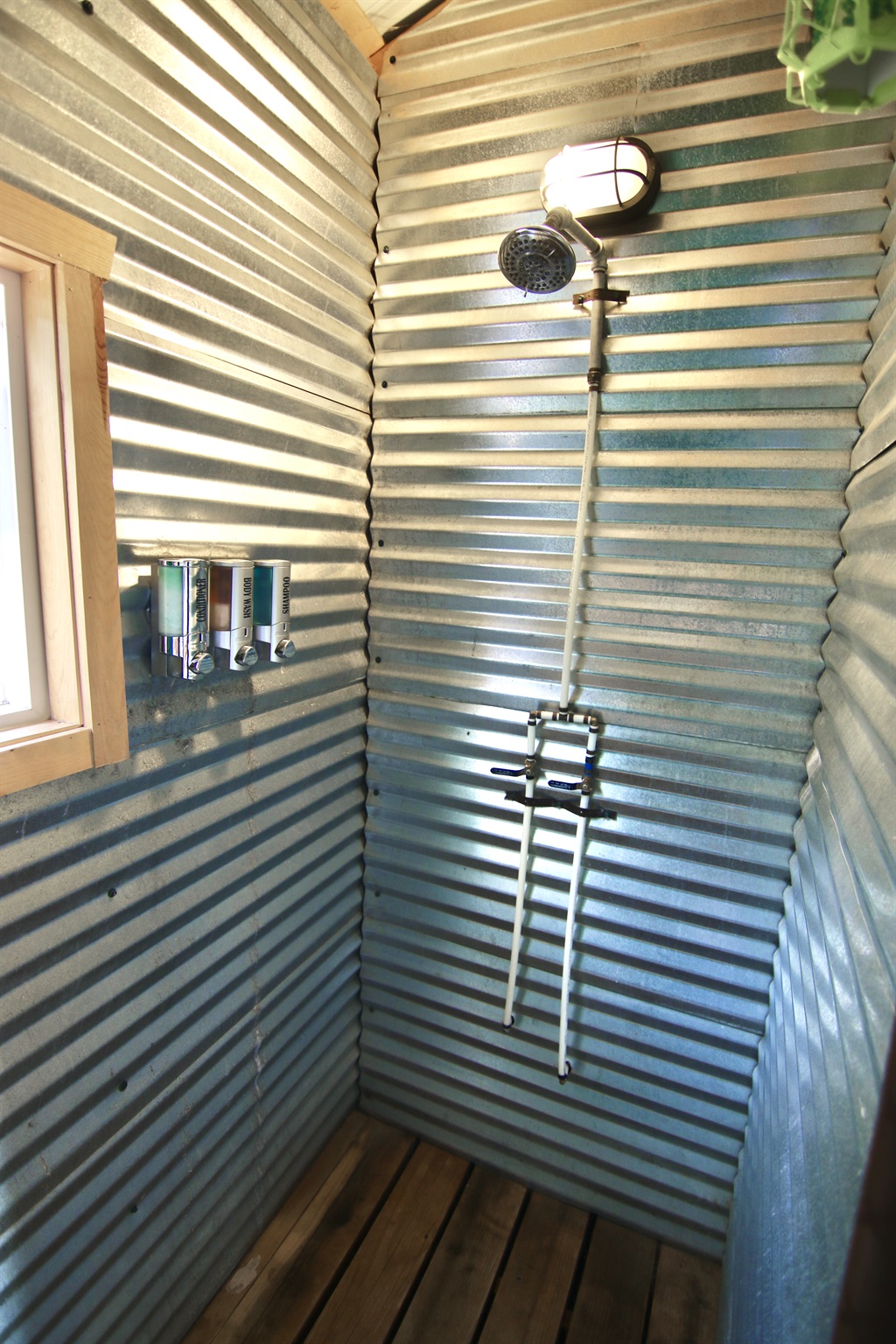 Camping at it's finest with a full made up Queen Bed with all the linens, and 2 additional single beds in bunk style with all the linens provided, and a full detached bathroom and shower house with hot water. It is a guest favorite! Sleep from 1 to 4 people. This Glamping Cabin has an overhead door that opens onto a covered deck overlooking the forest. With the door open it is like a cozy cabin with a stunning view of the night sky and sunrise.