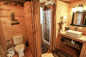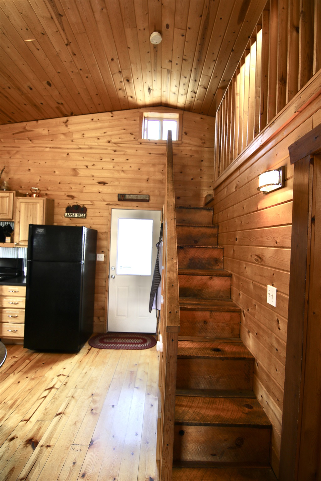 Featuring a spacious main level with 2 bedrooms, a full bath w/shower, full kitchen, dining table, and plush sofas. And don't forget the extra loft, featuring double padded carpet and 3 queen mattress beds. Outside you will find a Campfire pit, picnic table, and fantastic views with miles of walking trails. The cabin has HDTV (70+ channels) w/DVD player, FREE wi-fi, and all the linens are included.