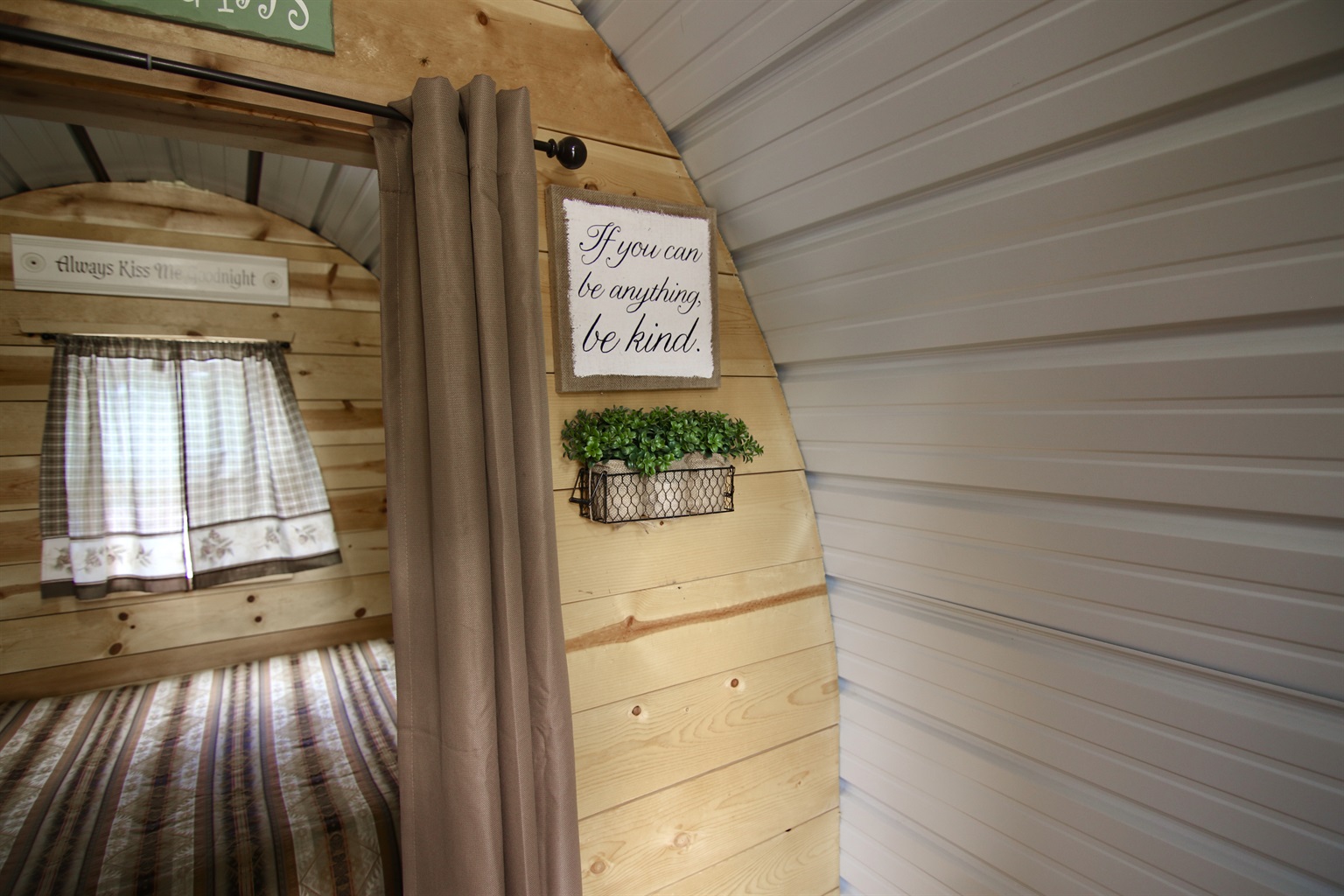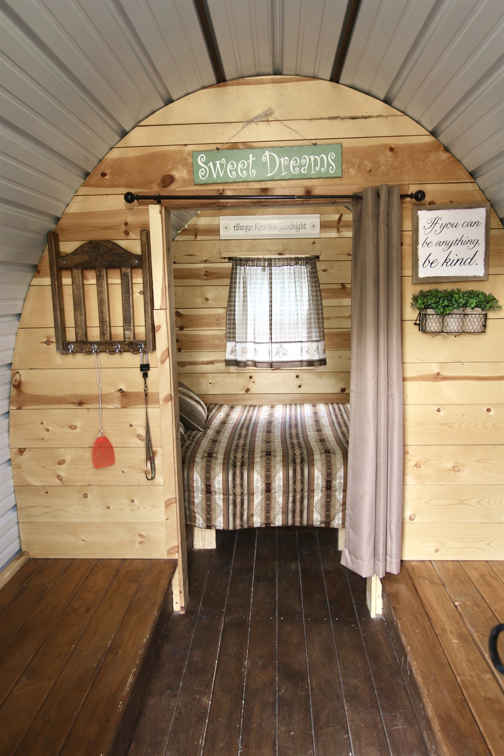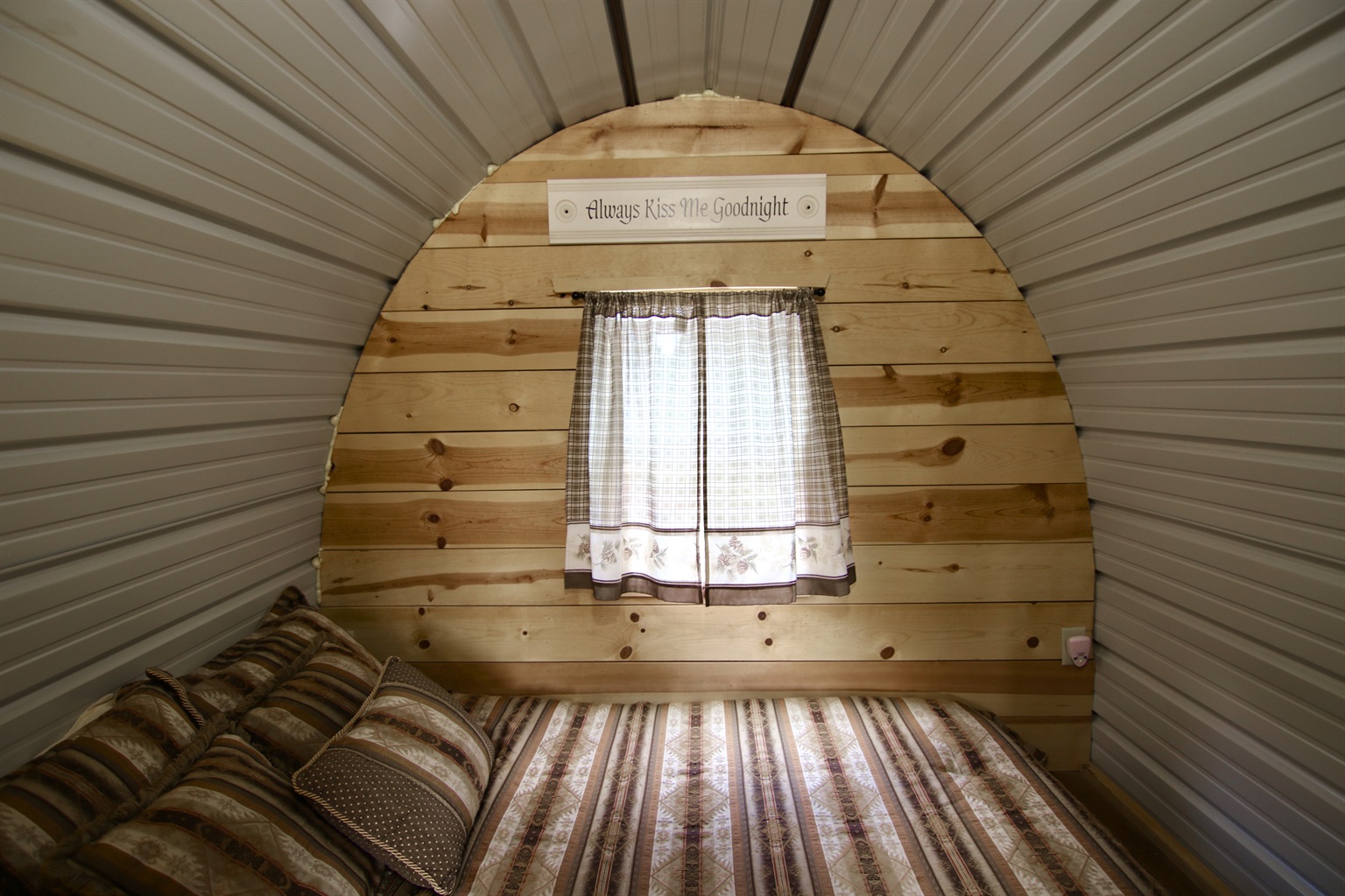 No waiting in hotel lines here! Just drive in and make yourself at home. Our Western Wagon is a great place to stay for groups of up to 4 people. The wagon is split into two sections, the first section has a seating area with mattresses and linens for two single beds and the second area has a queen bed. This makes it ideal for young families, friends, or couples wanting to experience something new. The wagon is complete with a cozy front porch, Wi-Fi, private parking, and electricity.